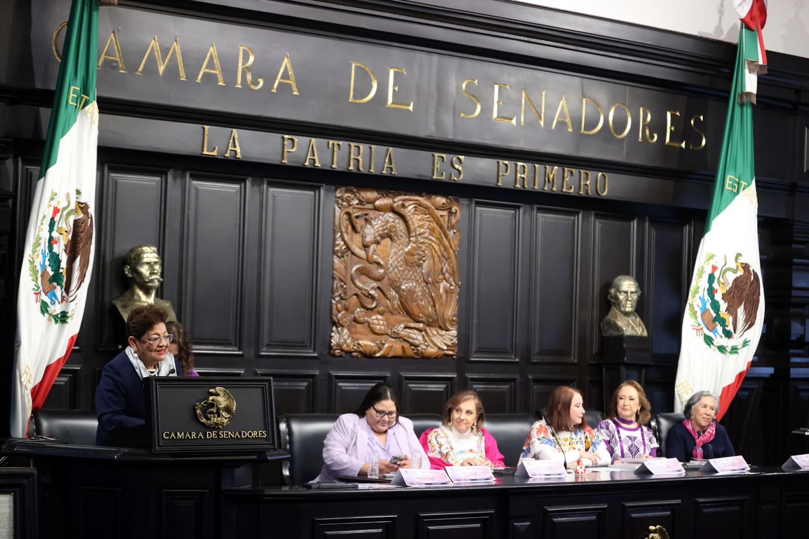 intervención, la presidenta de la Mesa Directiva de la Cámara de Senadores,