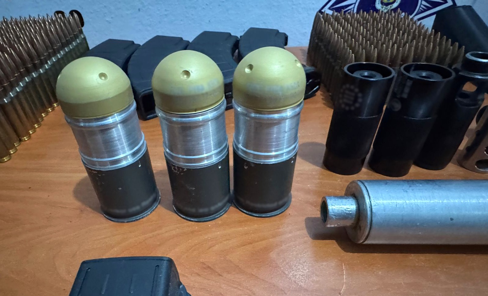 explosivo, ocho granadas y equipo táctico.