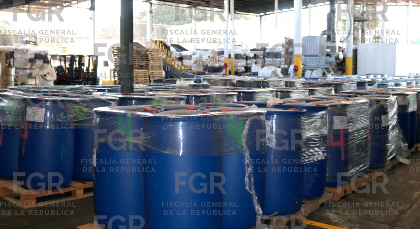 En dicho acto, se destruyeron 27 toneladas 874 kilos 986 gramos y 77 mil 199 litros 670 mililitros de sustancias y precursores químicos, entre los que se encontraban acetato de plomo, peróxido de dicumilo, cloruro de mercurio, acetona, ácido clorhídrico, alcohol etílico, tolueno, alcohol metílico, entre otras. En total, fueron 105 toneladas 74 kilos 656 gramos de estas sustancias.